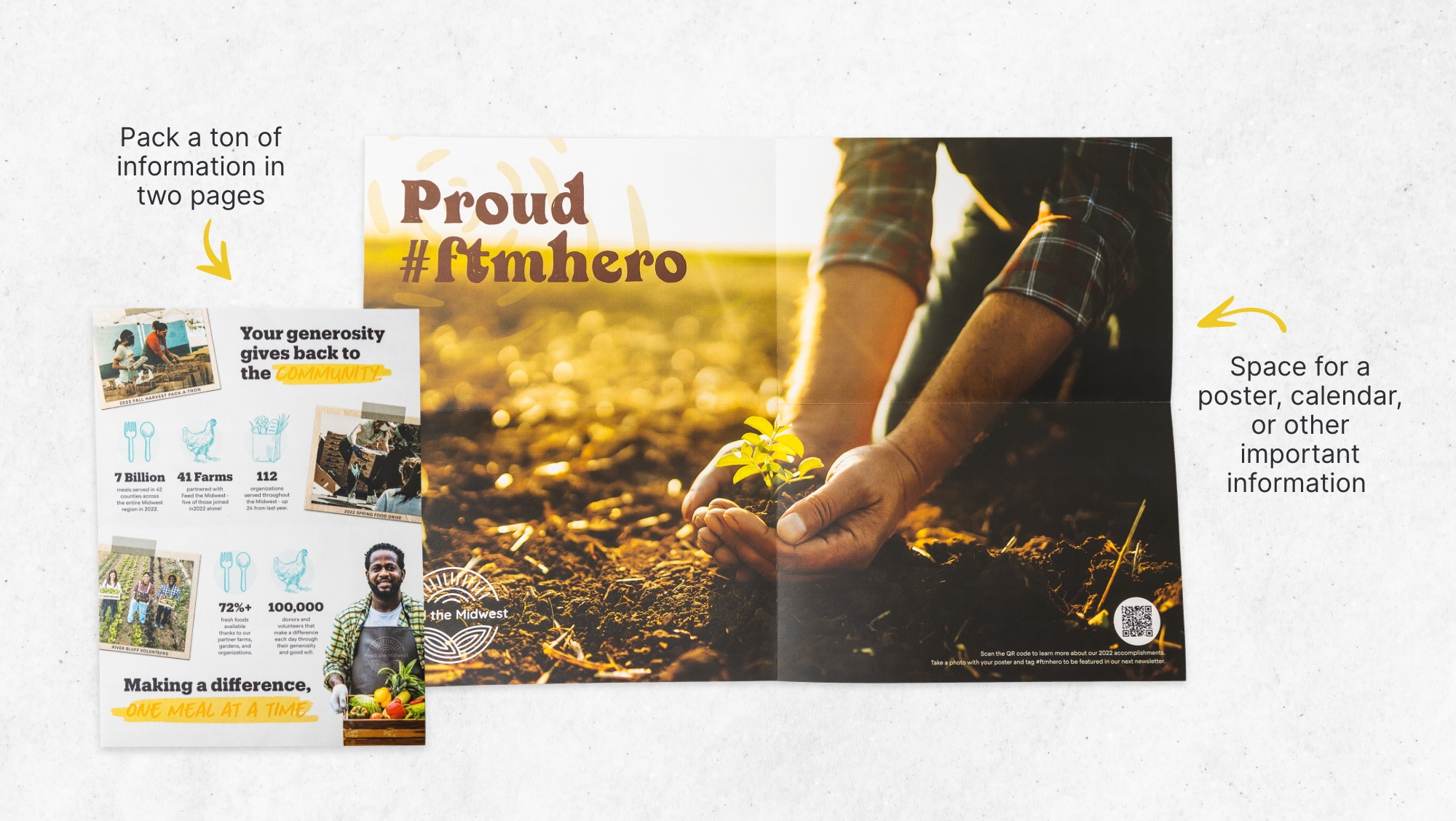Recognize your donor's contributions with this Poster-Sized Self-Mailer! Use it to highlight donors' real-world impact or thank volunteers for their tireless efforts. This dynamic piece folds to an affordable mail-ready format and opens up to poster size so recipients can hang it up and proudly display their achievements.